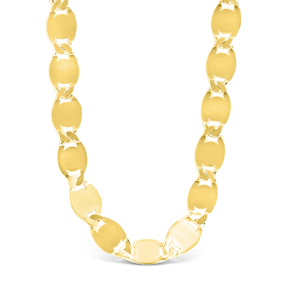 Bold, but laid-back. This sculptural chain is all clean lines and soft curves—designed to sit flat against the collarbone with a high-shine finish. A standout staple you'll keep in rotation.