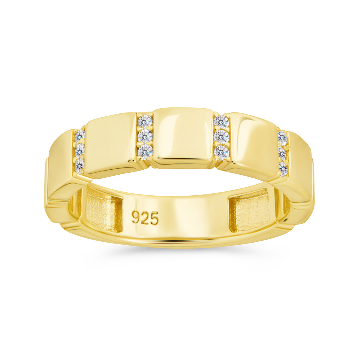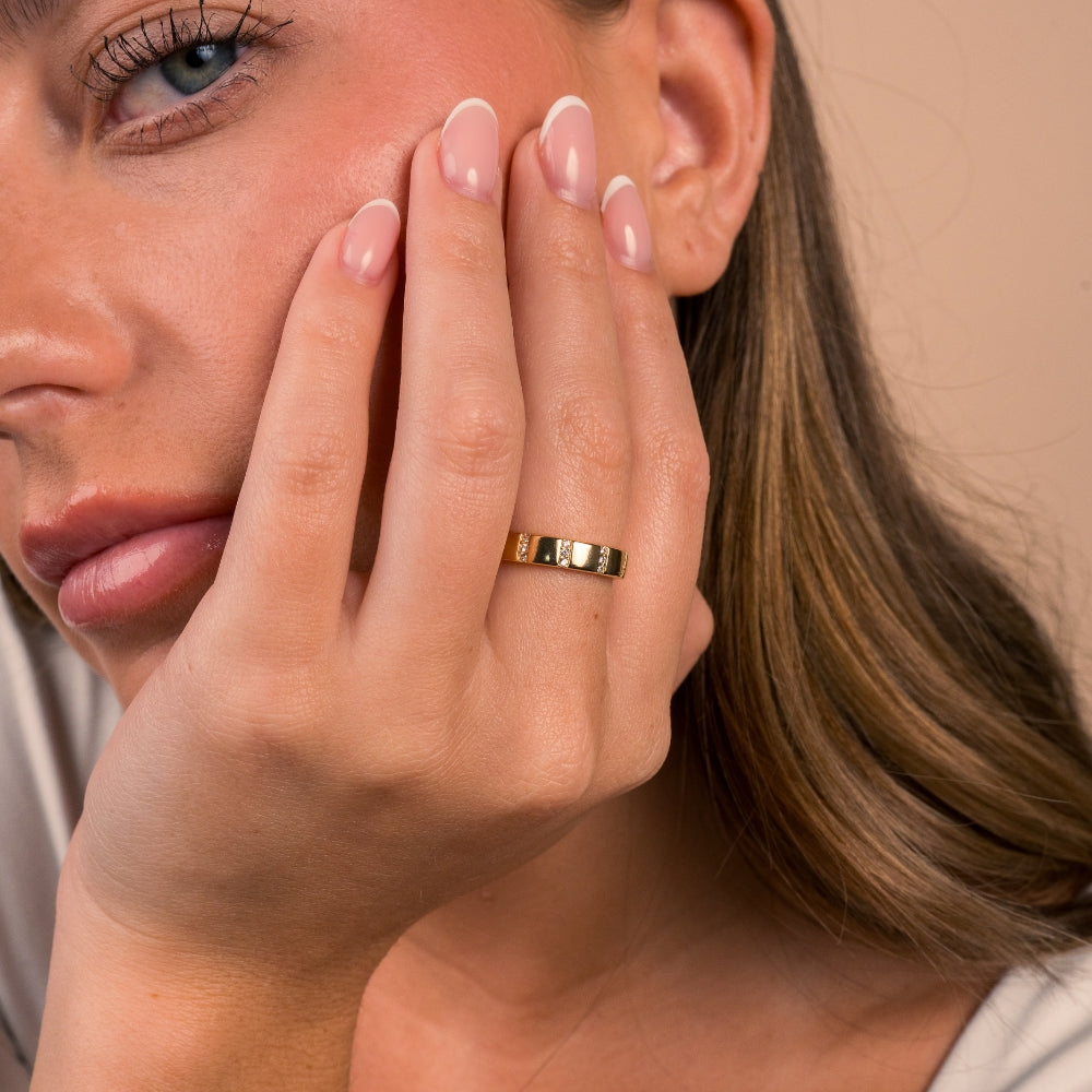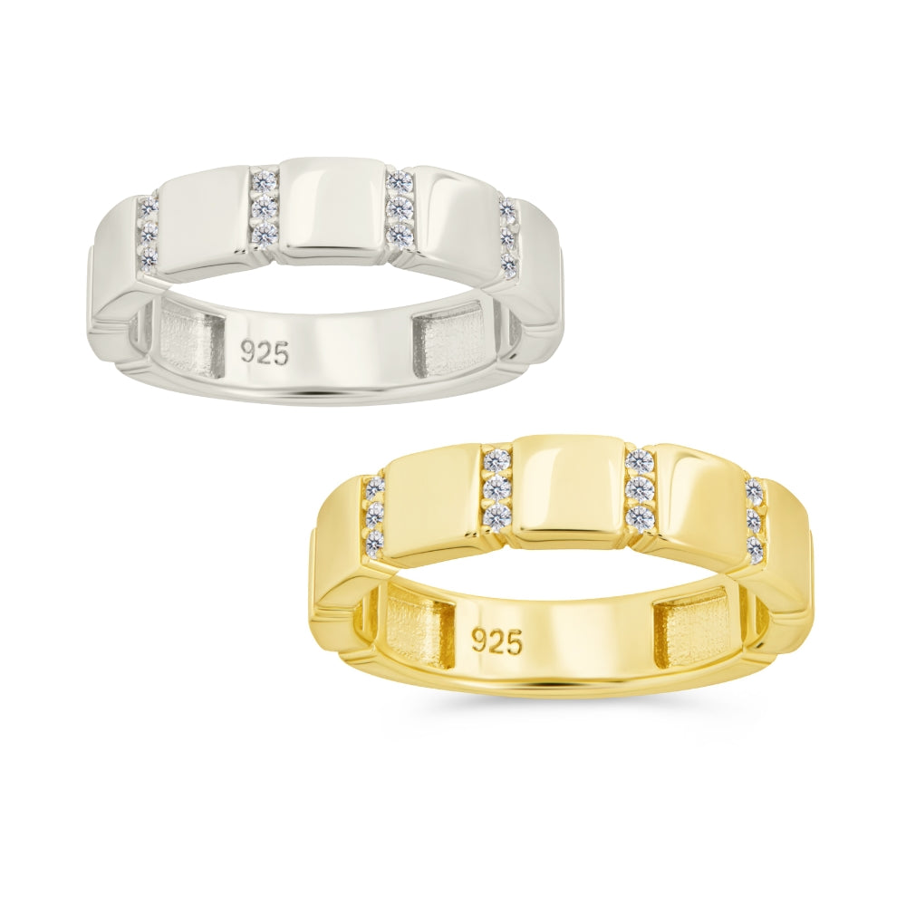 Indulge in luxury with the Bradley CZ Ring. Featuring staggered rows of sparkling cubic zirconia and a polished finish, this ring exudes sophistication and exclusivity. Elevate any outfit and make a statement with this stunning piece.