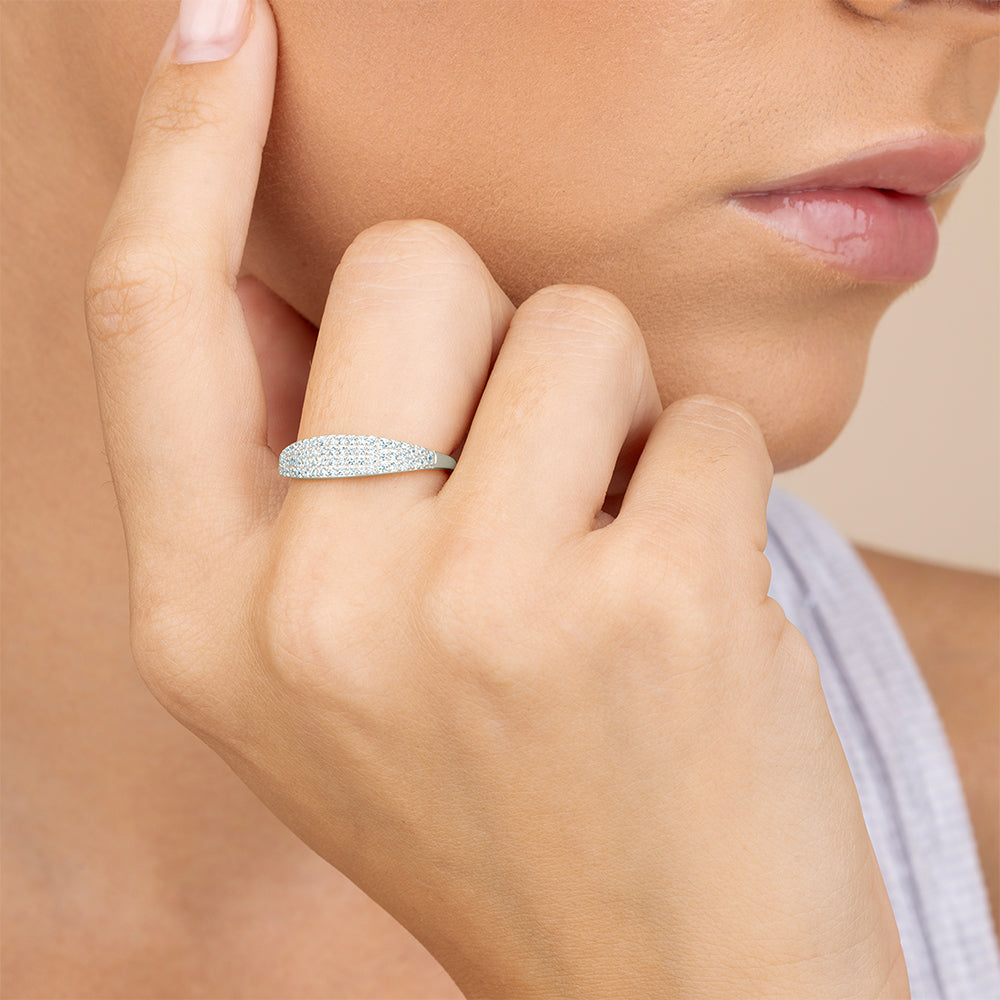 A streamlined band set with rows of CZ stones. Minimal, versatile, and made to stack your way.