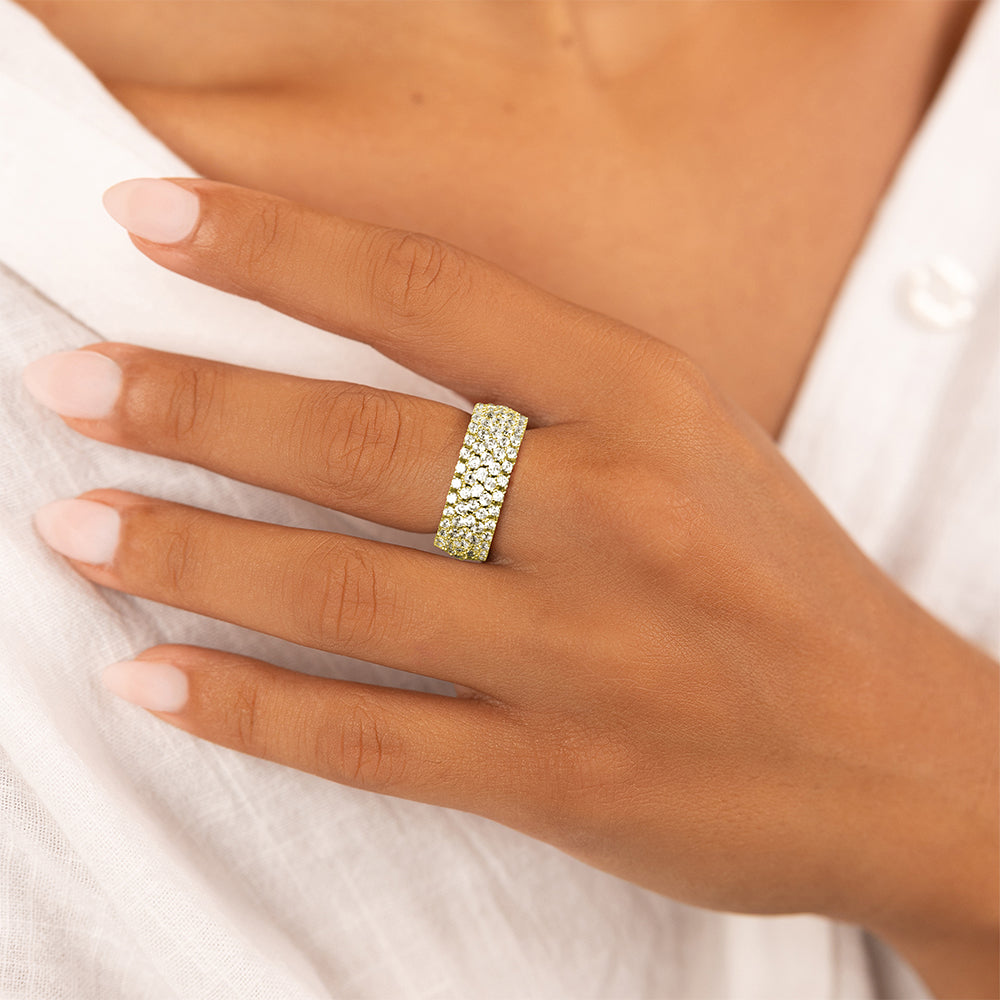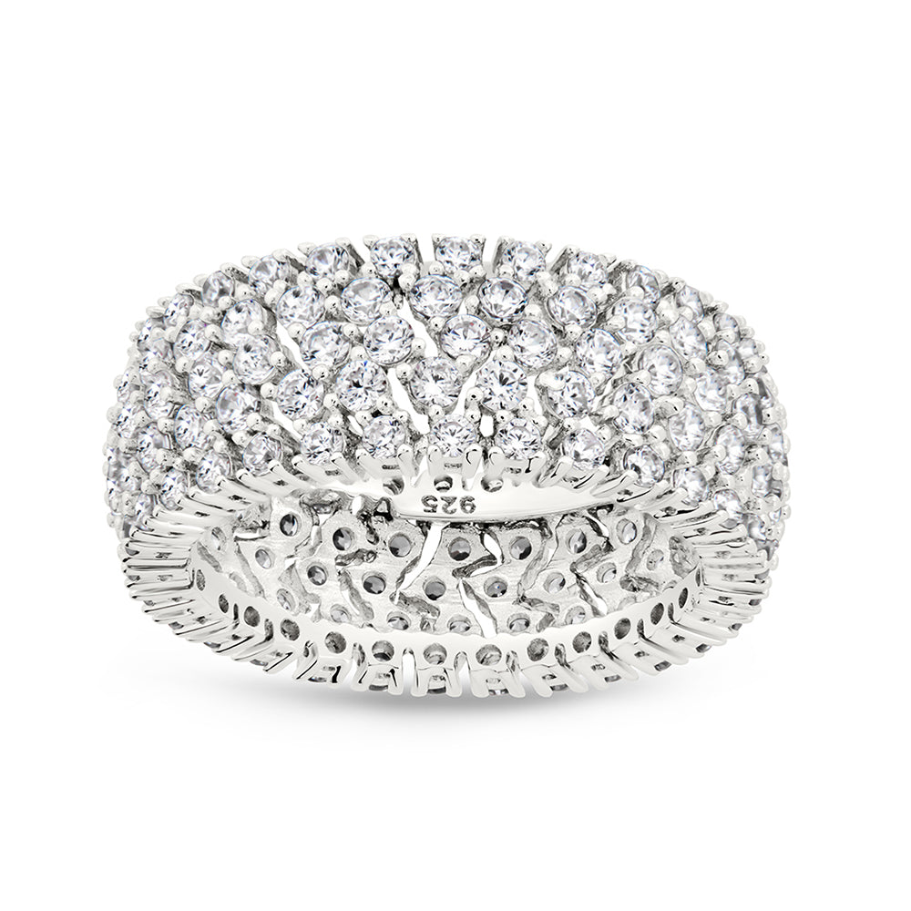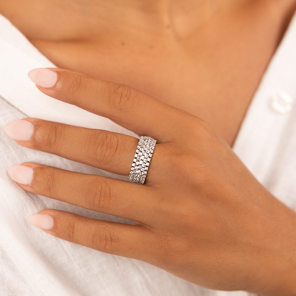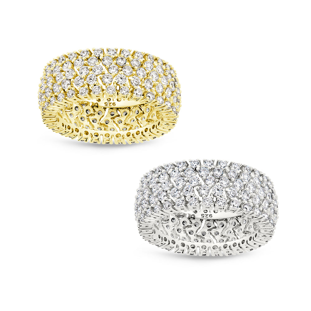 Indulge in elegance with our Yvonne CZ Stacking Ring. This beautiful ring features rows of sparkling CZ stones, evoking the eternal beauty of an eternity band ring. Elevate your style and add a touch of sophistication to any outfit.