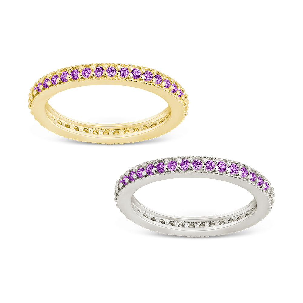 Sterling Silver 2.5mm Thin Amethyst CZ Band Ring