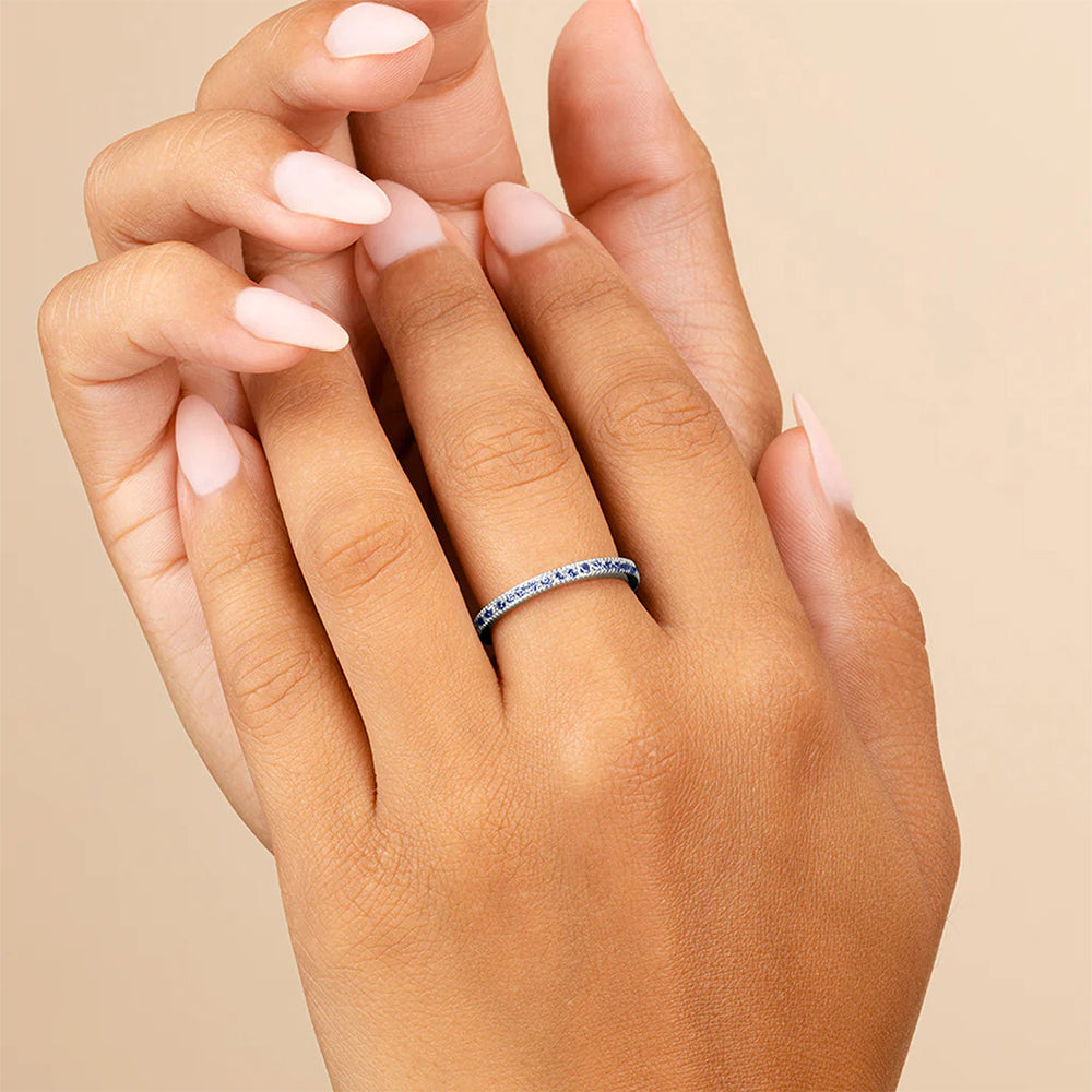 Cool, quiet, unforgettable. A row of deep blue sapphires set in sleek metal—made to elevate your everyday. Subtle brilliance, bold impression.