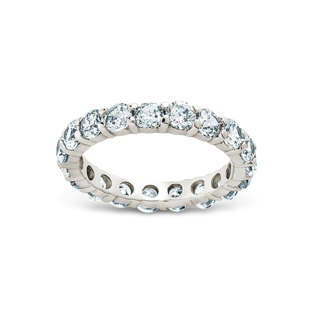Bold. Sculptural. Brilliant. A row of luminous cubic zirconia set in sterling silver—this eternity ring makes a statement without saying a word.