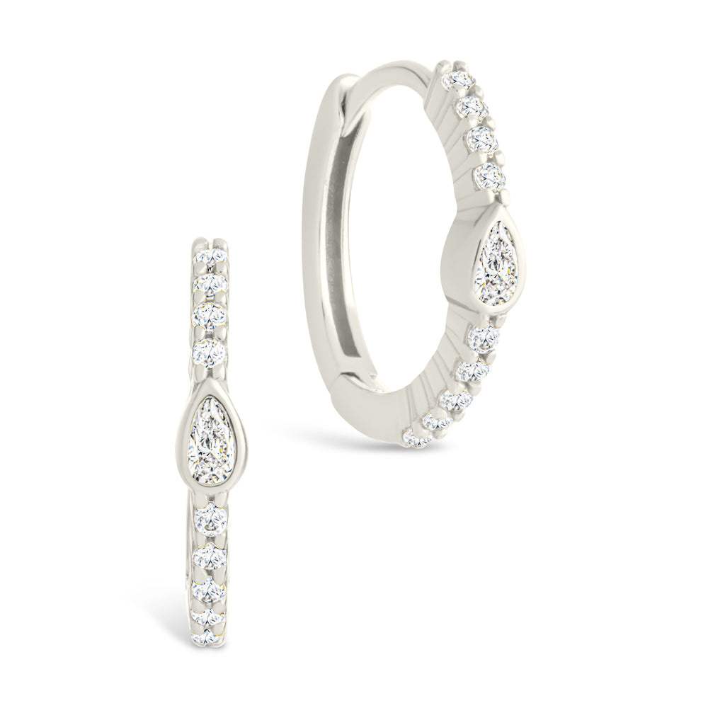 Sterling Silver Pear Cut Bezel Set Huggie Hoop Earrings