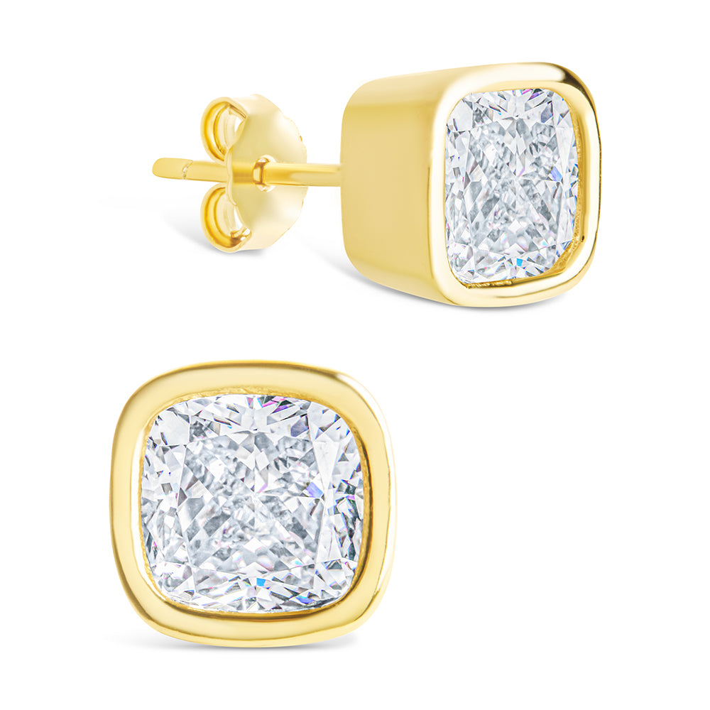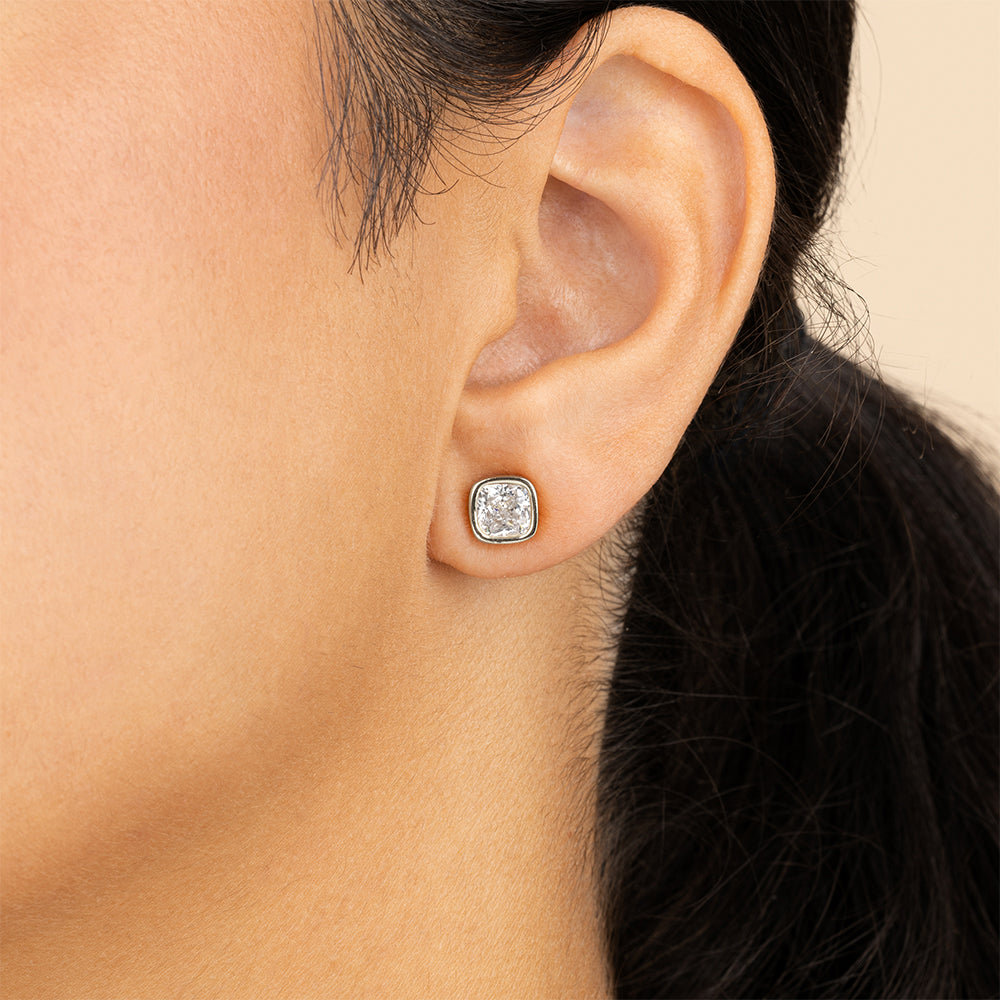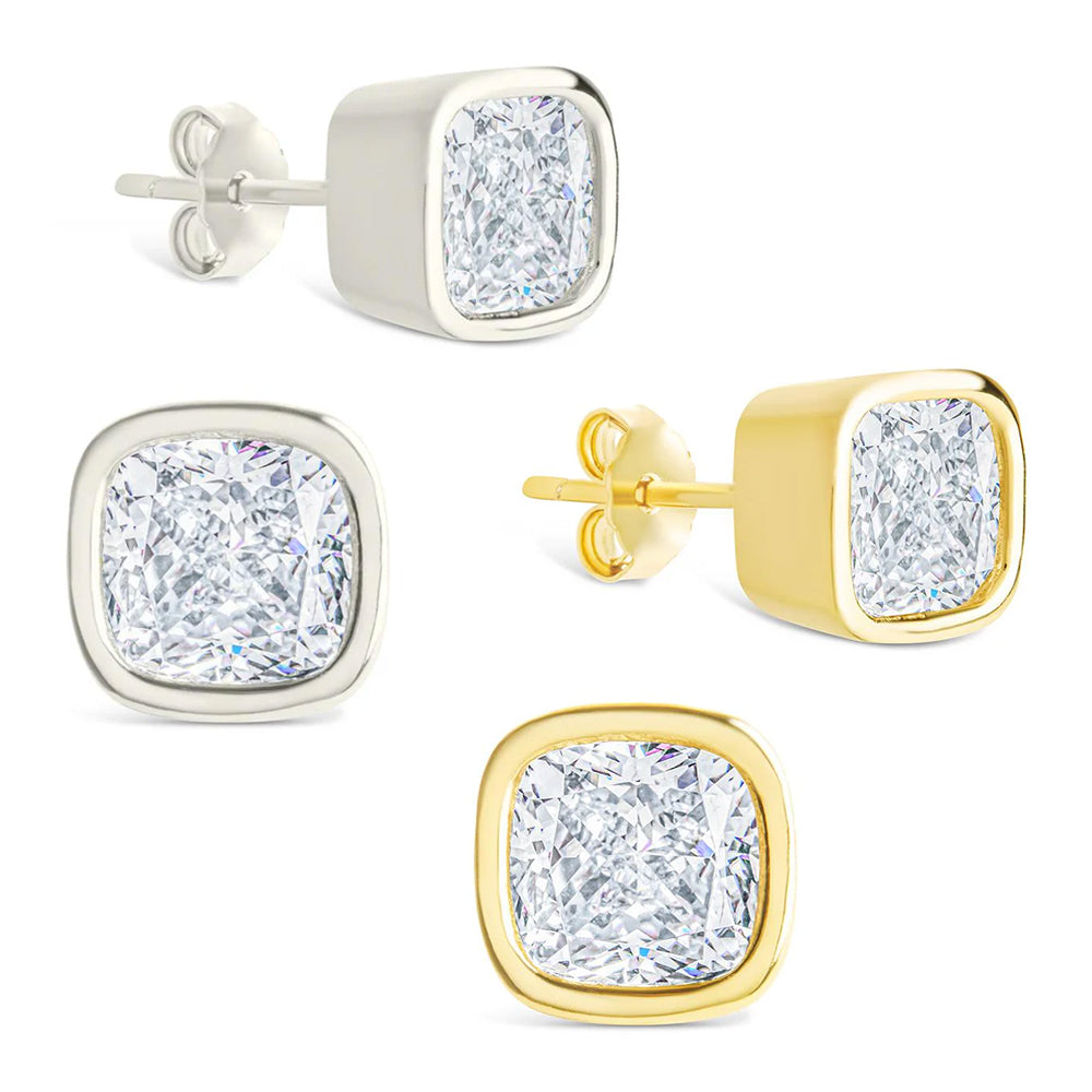 Sterling Silver Cushion Cut Stud Earrings
