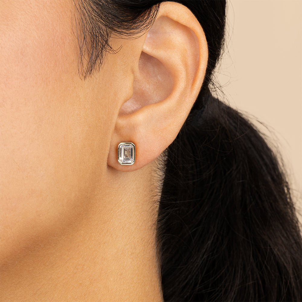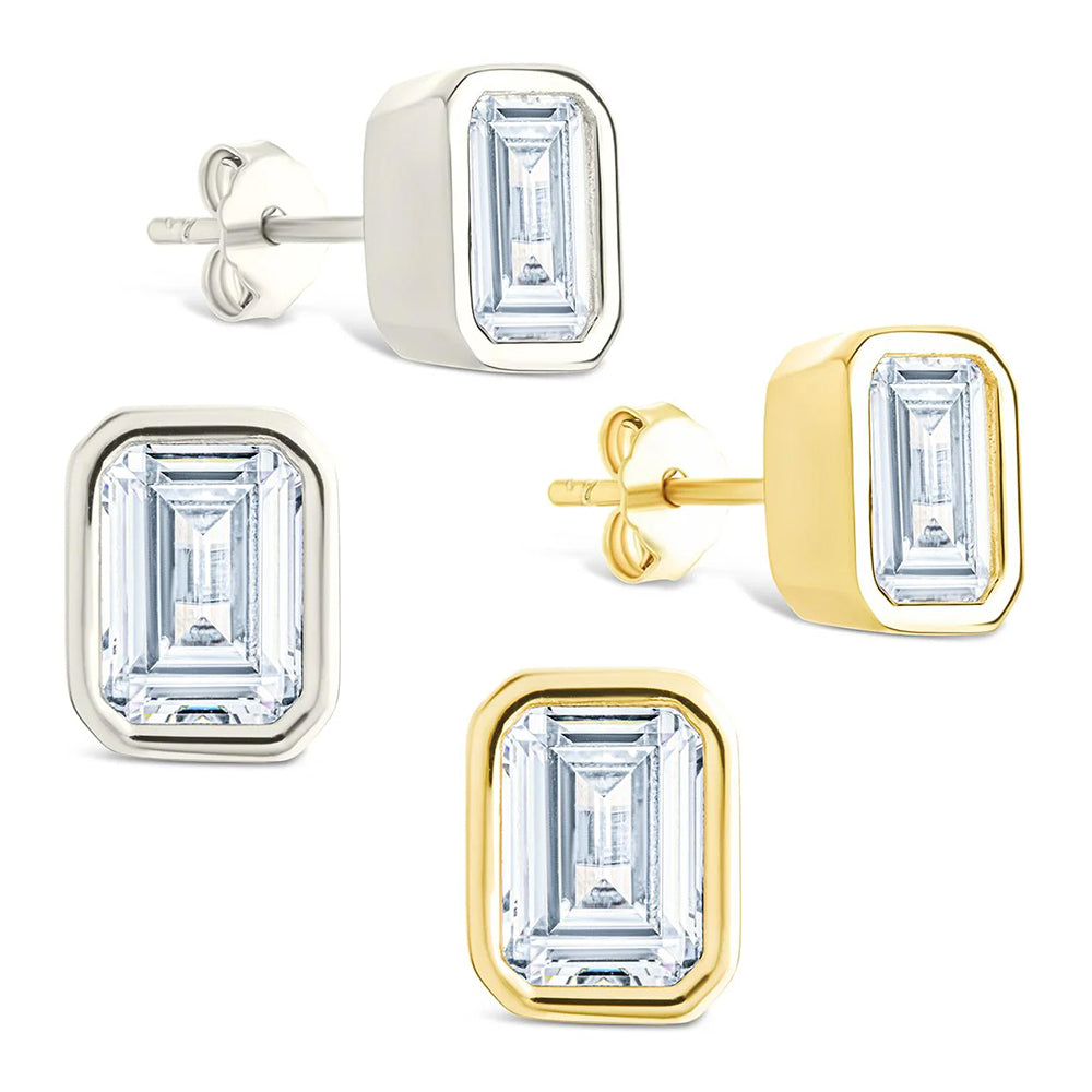 These sterling silver studs are anything but basic. Featuring Hearts & Arrows Emerald cut stones for insane brilliance, they catch the light from every angle. Set in sleek, non-tarnishing sterling silver, they’re the perfect mix of classic and modern.