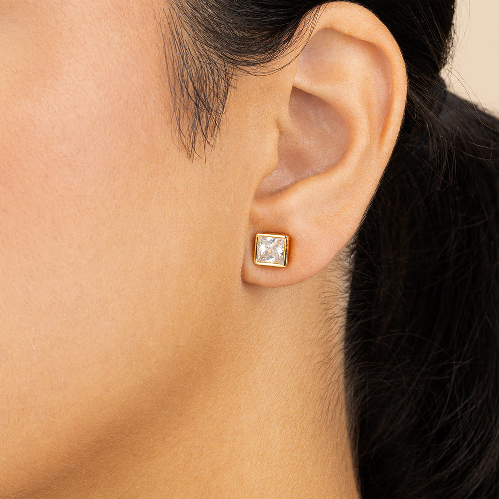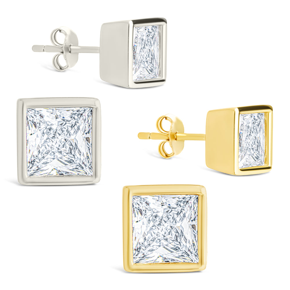 These sterling silver studs are anything but basic. Featuring Hearts & Arrows Princess cut stones for insane brilliance, they catch the light from every angle. Set in sleek, non-tarnishing sterling silver, they’re the perfect mix of classic and modern.