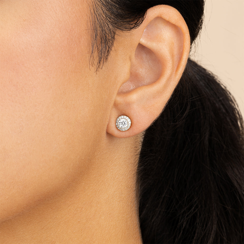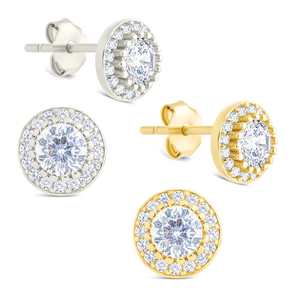 The Round Halo Stud Earrings are a mix of elegance and edge. Made with Hearts & Arrows CZs, the round-shaped center stone is surrounded by a delicate cz halo. Simple enough for every day, but stunning enough to still make a statement.