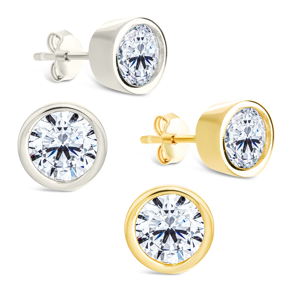 Sterling Silver Round Cut Stud Earrings