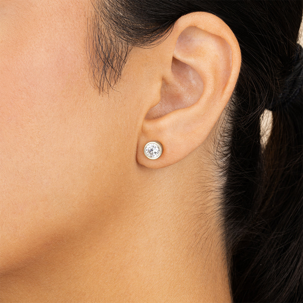 These sterling silver studs are anything but basic. Featuring Hearts & Arrows Round cut stones for insane brilliance, they catch the light from every angle. Set in sleek, non-tarnishing sterling silver, they’re the perfect mix of classic and modern.