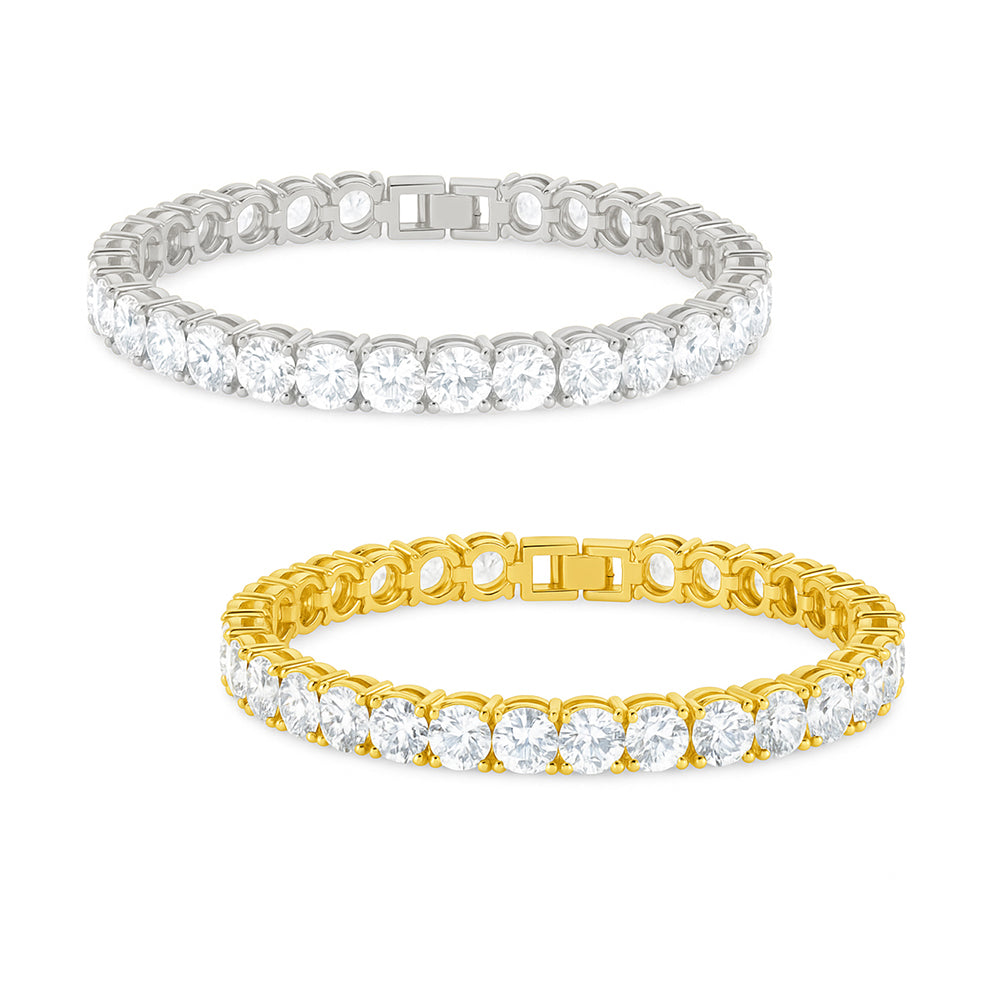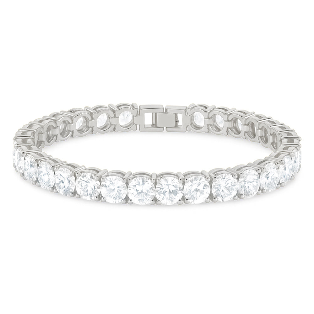 Round, radiant, and impossible to miss. This tennis bracelet brings all the sparkle—no styling required.