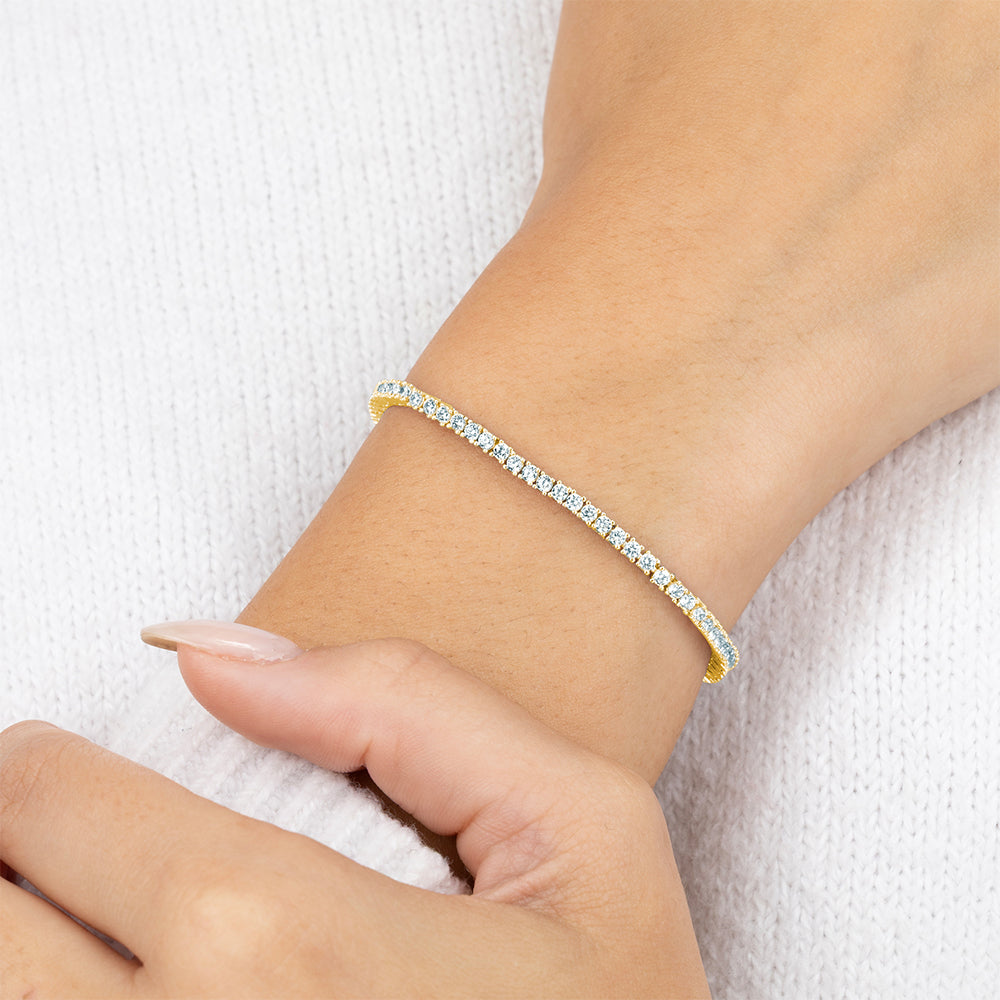 The Mirabell Tennis Bracelet is classic with a twist. Featuring round Hearts & Arrows CZ stones, it’s the kind of piece you’ll throw on once and forget to take off. Easy to stack, even better solo.